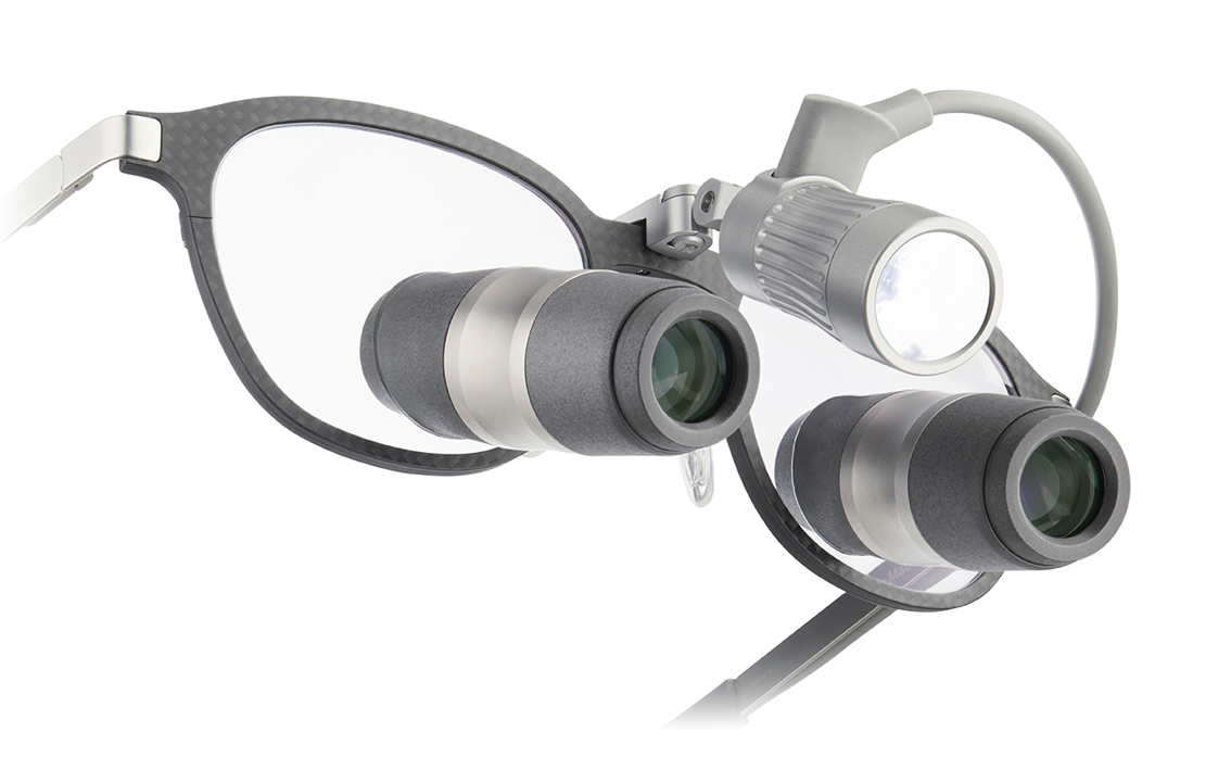 Lightweight titanium temples and front make up the elegant Icon frame. Icon allows a customised loupe angle to be fitted, to facilitate an optimal ergonomic position.